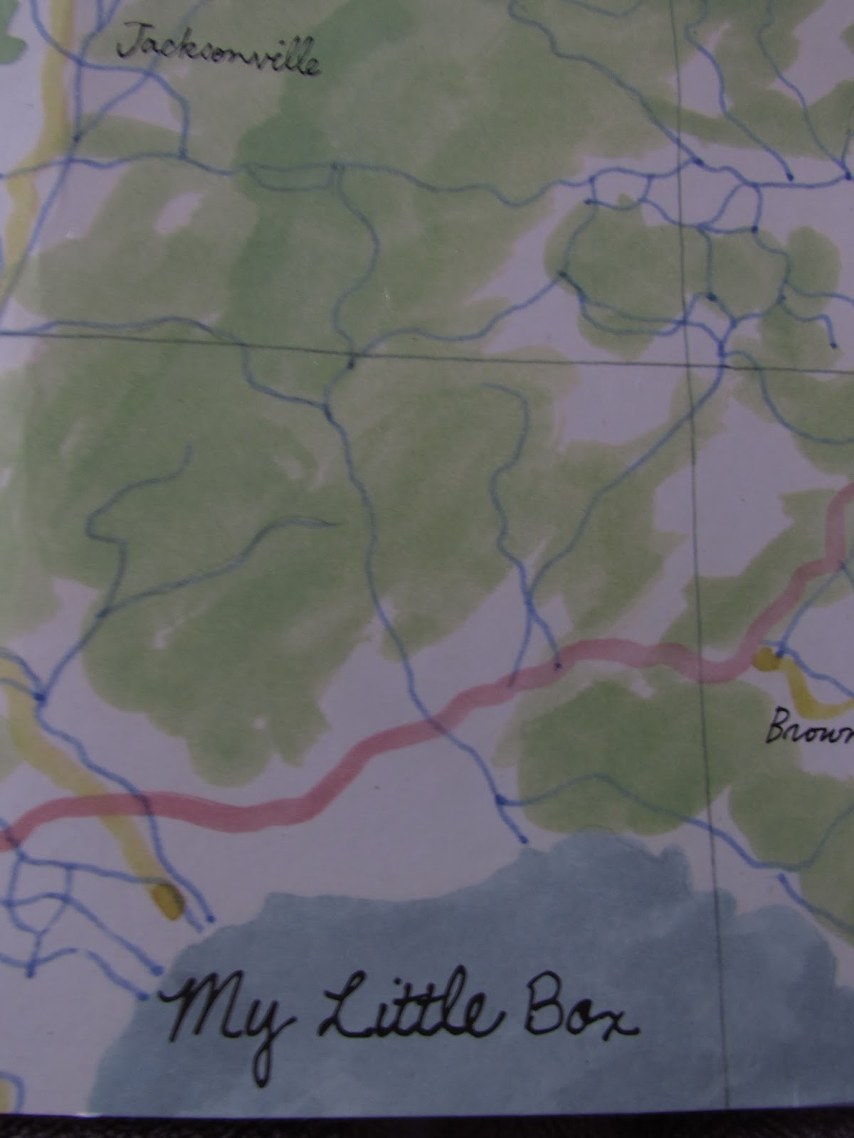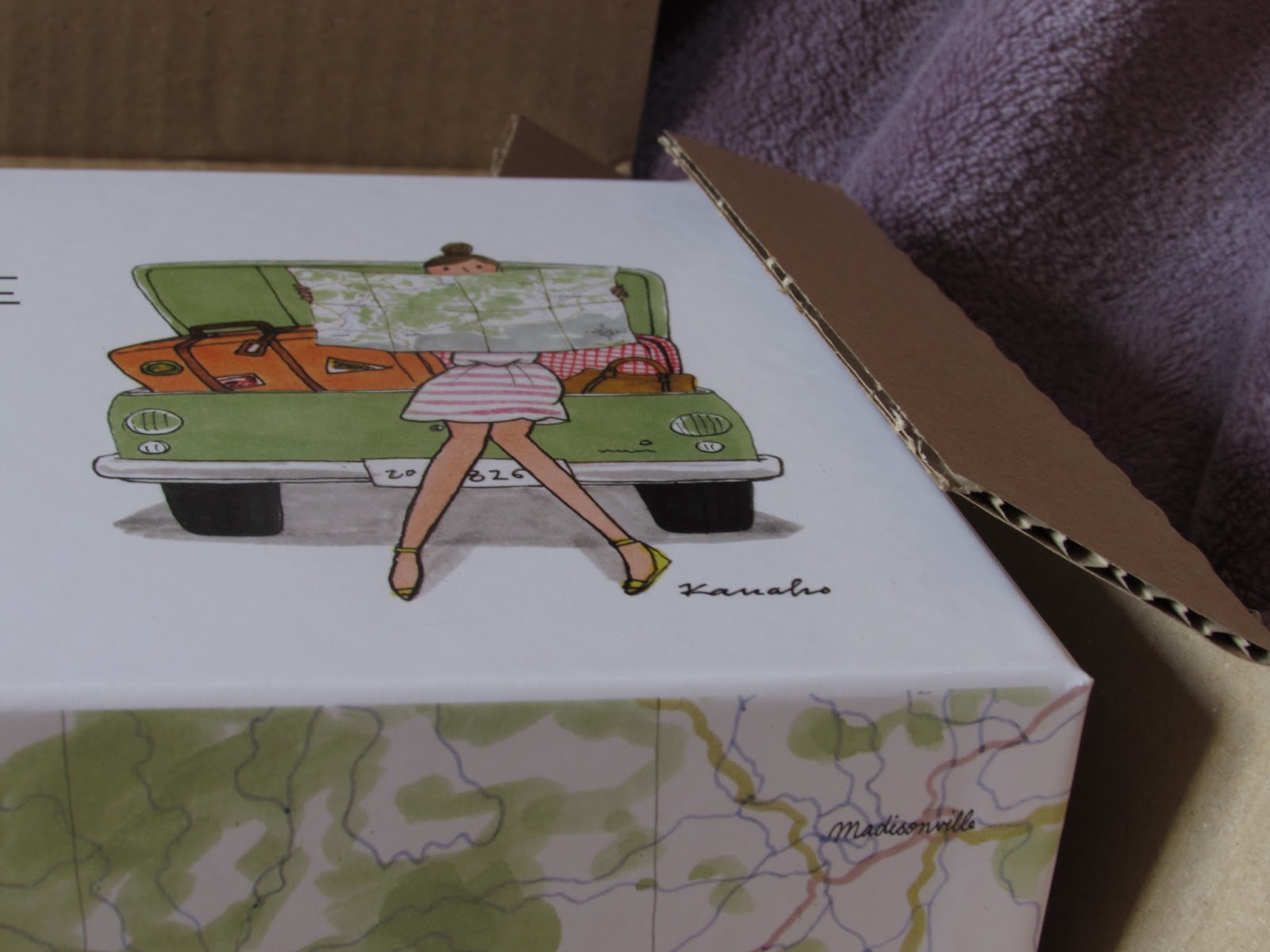 To my surprise I found a flat present, a wrapped piece of paper, inside was a lovely note telling me that for the next three months I will receive a box from My Little Box. I was so happy, I could not believe it and I'm still very surprised that I have just opened the July 2015 Road Trip Box.