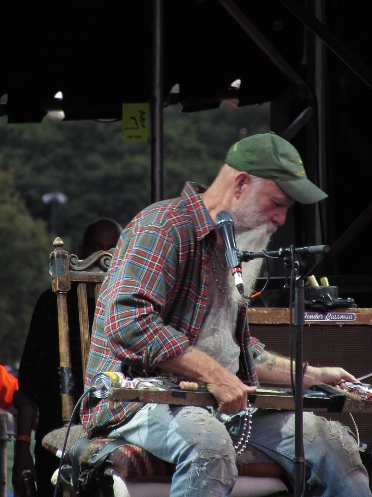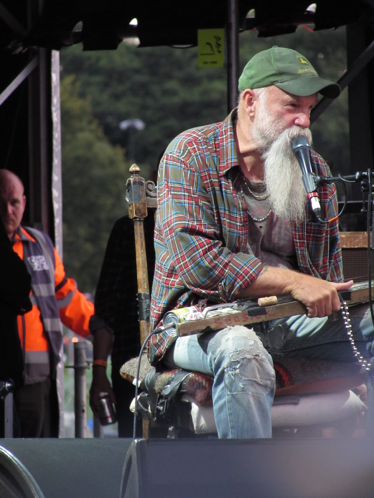 The penultimate performer was Seasick Steve he came to Carfest a few years ago his songs, well lets just say they're a bit different, he uses cool instruments like three string guitars and interesting self-made stuff and can I just add the music that is made is genius. His song Walkin' Man is excellent what he does is gets off stage and choses a girl from the front takes them on stage and sings then give them and hug to thank them, he continues by walking them down off the stage then goes on to perform the rest of the show. Well done Steve.