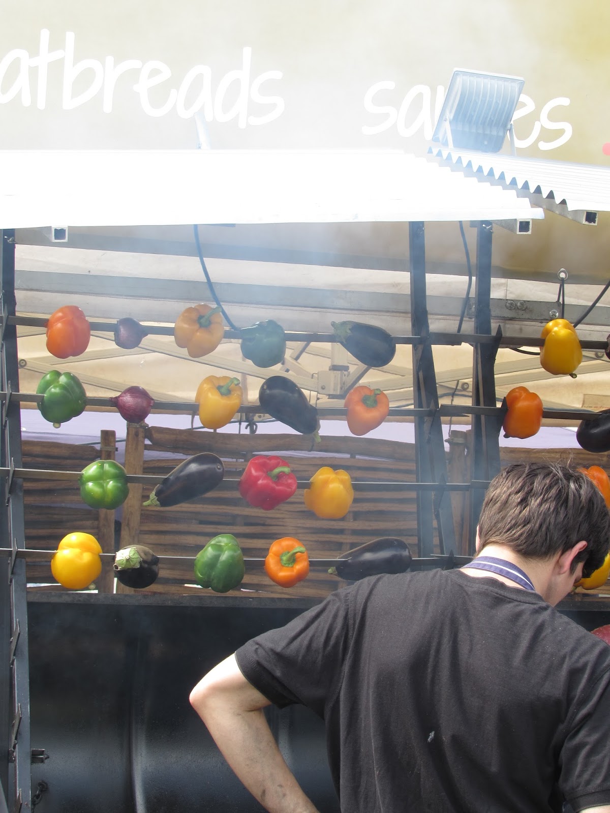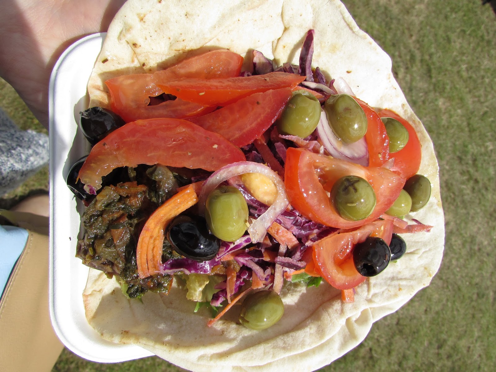 After looking at the cars Kate, Dad and I went on a Formula 1 racing simulator, it was very fun and took you speedily round the track on screen. Before lunch we looked at all the different food stalls and picked up a few malt loaf samples the chose where we wanted to go for lunch. Kate had a box of Japanese noodles which we had last year, but this year Mum, Dad and I went for something different. For lunch I went to a food stand called The Med Kitchen, which consisted of a flatbread with toppings on. I chose the Mezze option which was roasted vegetables for the toppings I had olives, tomatoes and coleslaw. Mum and Dad shared the BBQ Chicken option and had all of the toppings, that included red cabbage and lettuce as well as the three toppings on mine. Carfest I have to say never disappoints with the food and this one sure did live up to the standards of last year, a jolly good meal it was.