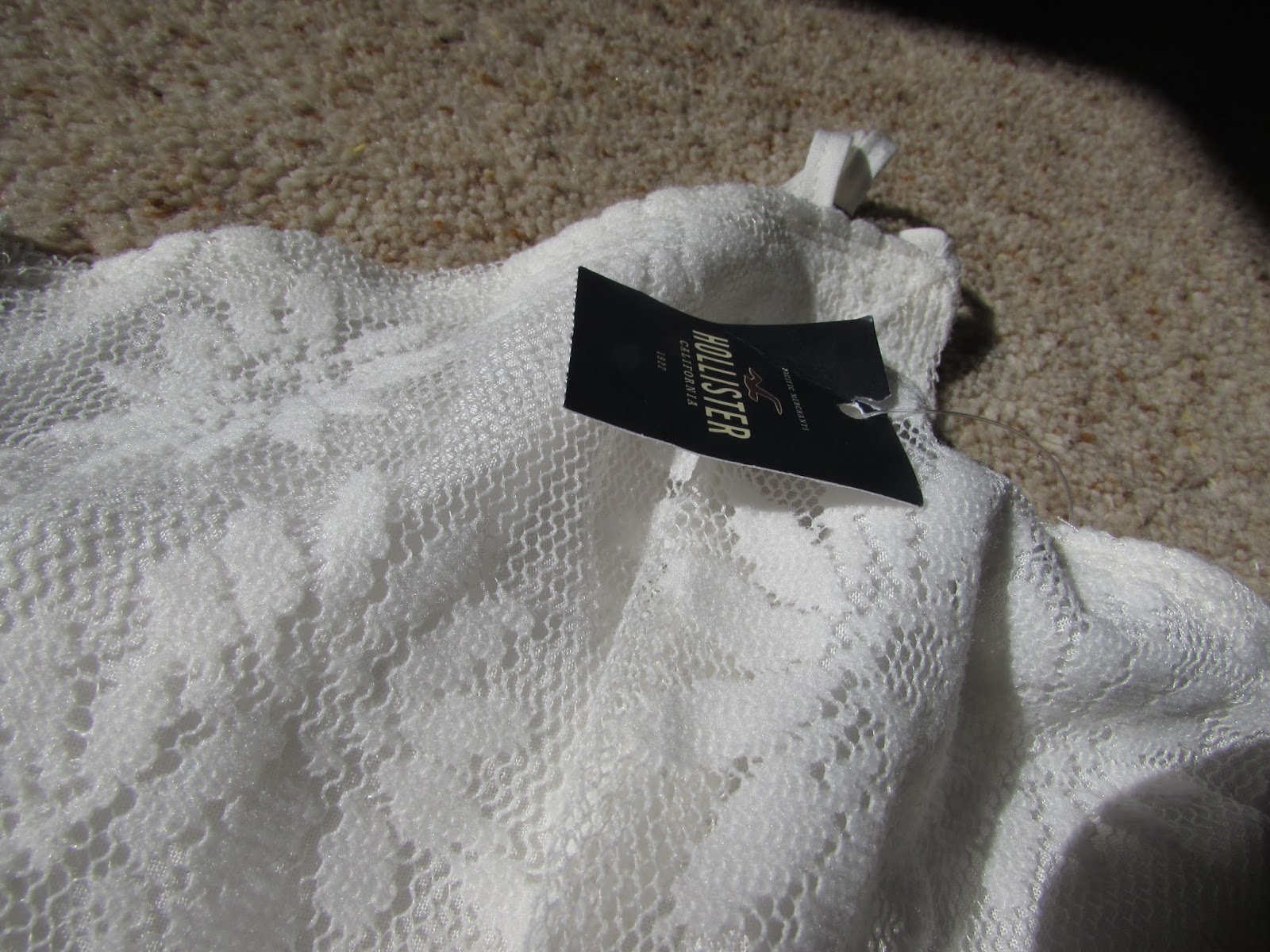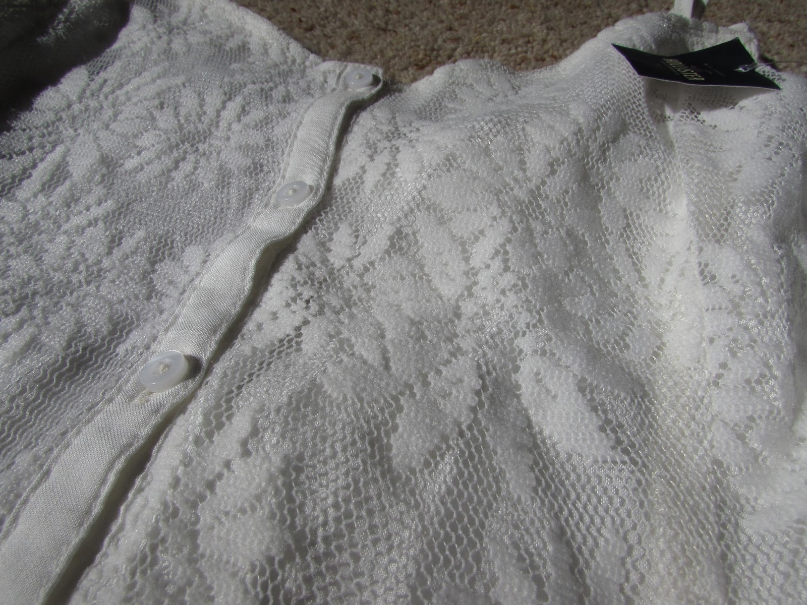 The last place we went to was Holister and oh I do love this shop. There was a small sale towards the back of the shop where I found a lovely white maxi dress for only £14.99. Bargain! The dress is white lace and flows gently all the way down to my ankles with tiny buttons down the front. It also has a cut out in the front down the legs and a fancy criss-cross back. One of my new favourites. Perfect for taking pictures and wearing after a day at the pool in a few weeks at Center Parcs.