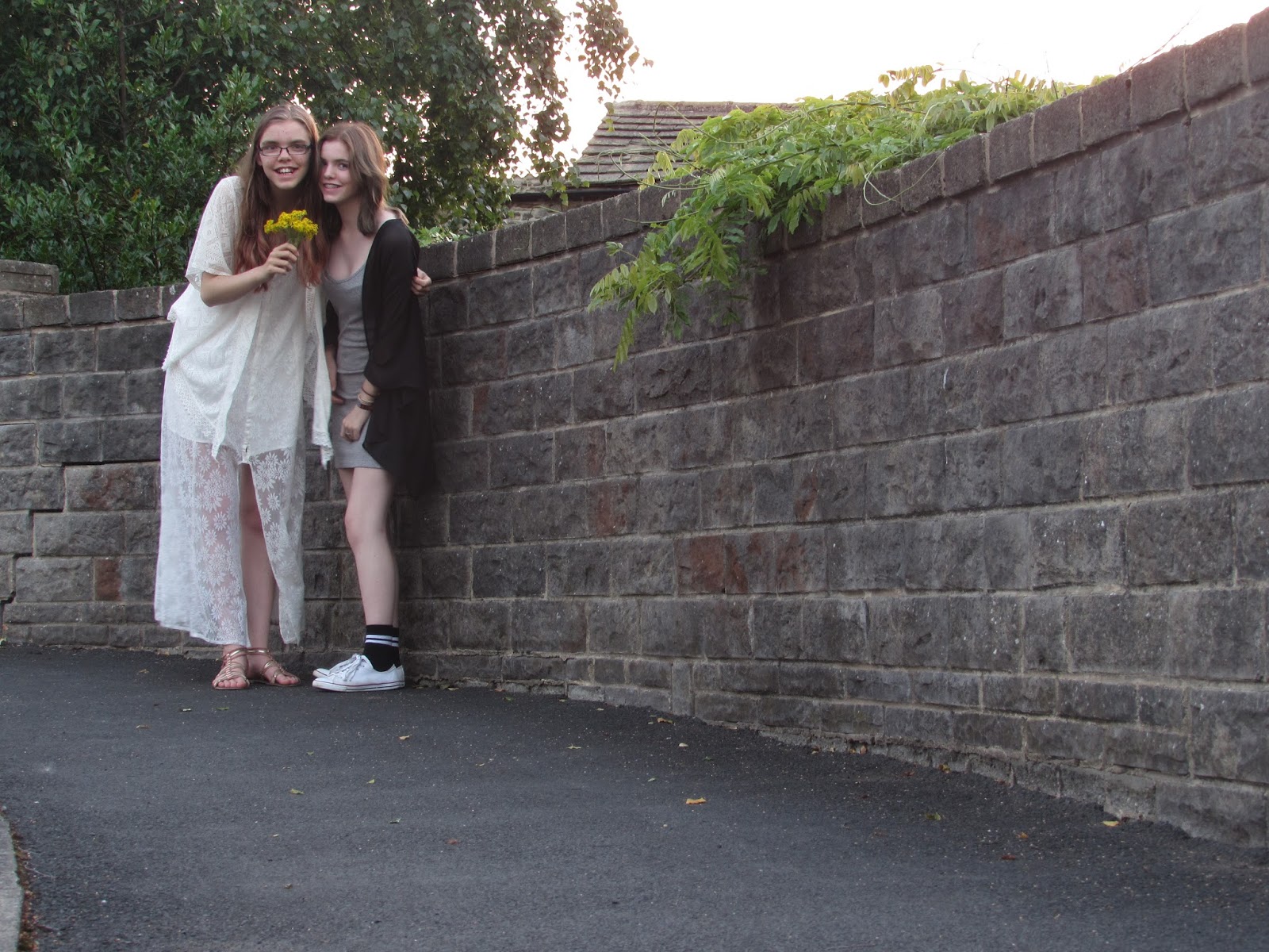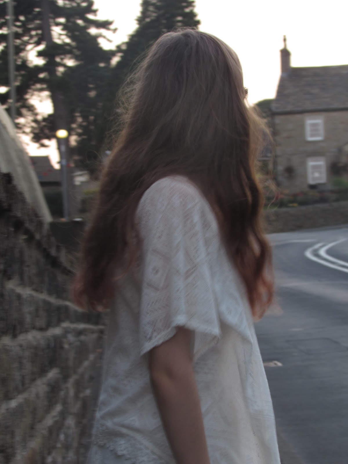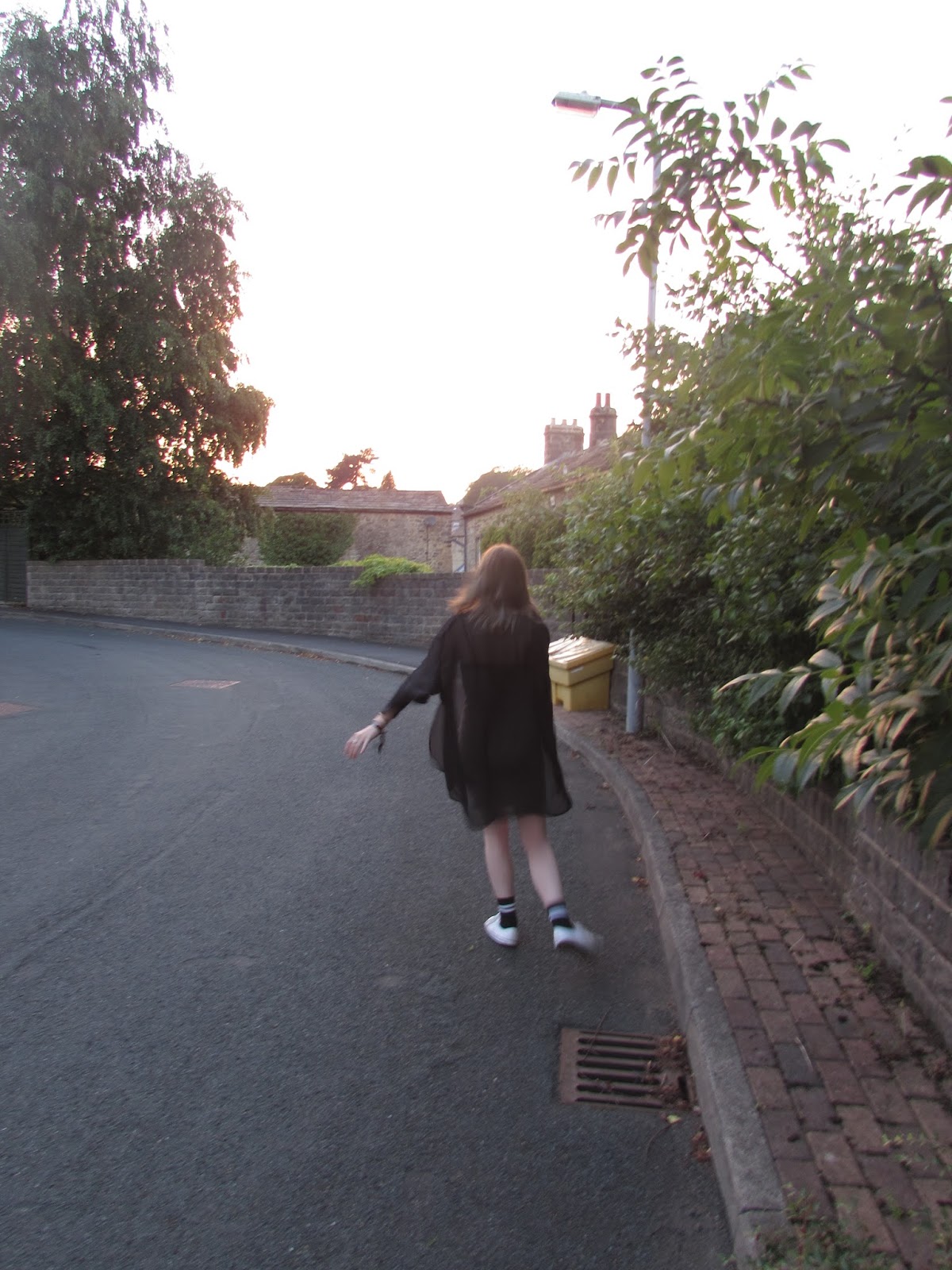 We set off at 8:09pm just after watching the sun drop behind the hill in a matter of seconds. This was so nice to watch and I was very happy because it wasn't cold outside just nice and warm, though not too hot. We trailed my long dress and Kate's trendy shoes down to some steps next to a beautiful cluster of the old houses that were here many moons ago. On the footpath through the village we were met by a couple walking the same path, so we styled it out by walking to the nearest cul-de-sac. Sneaky.