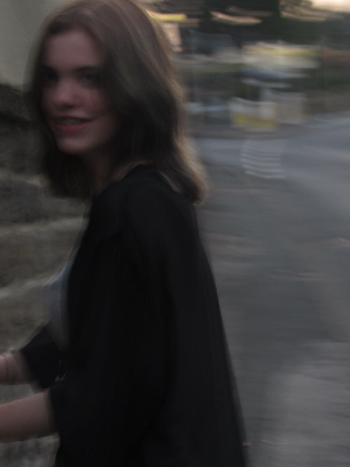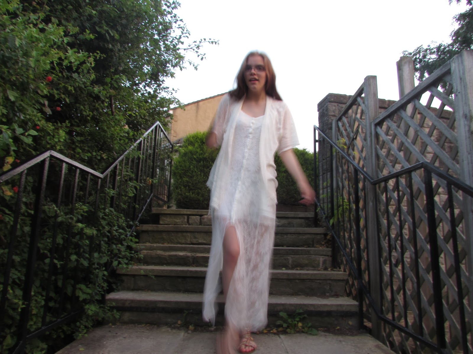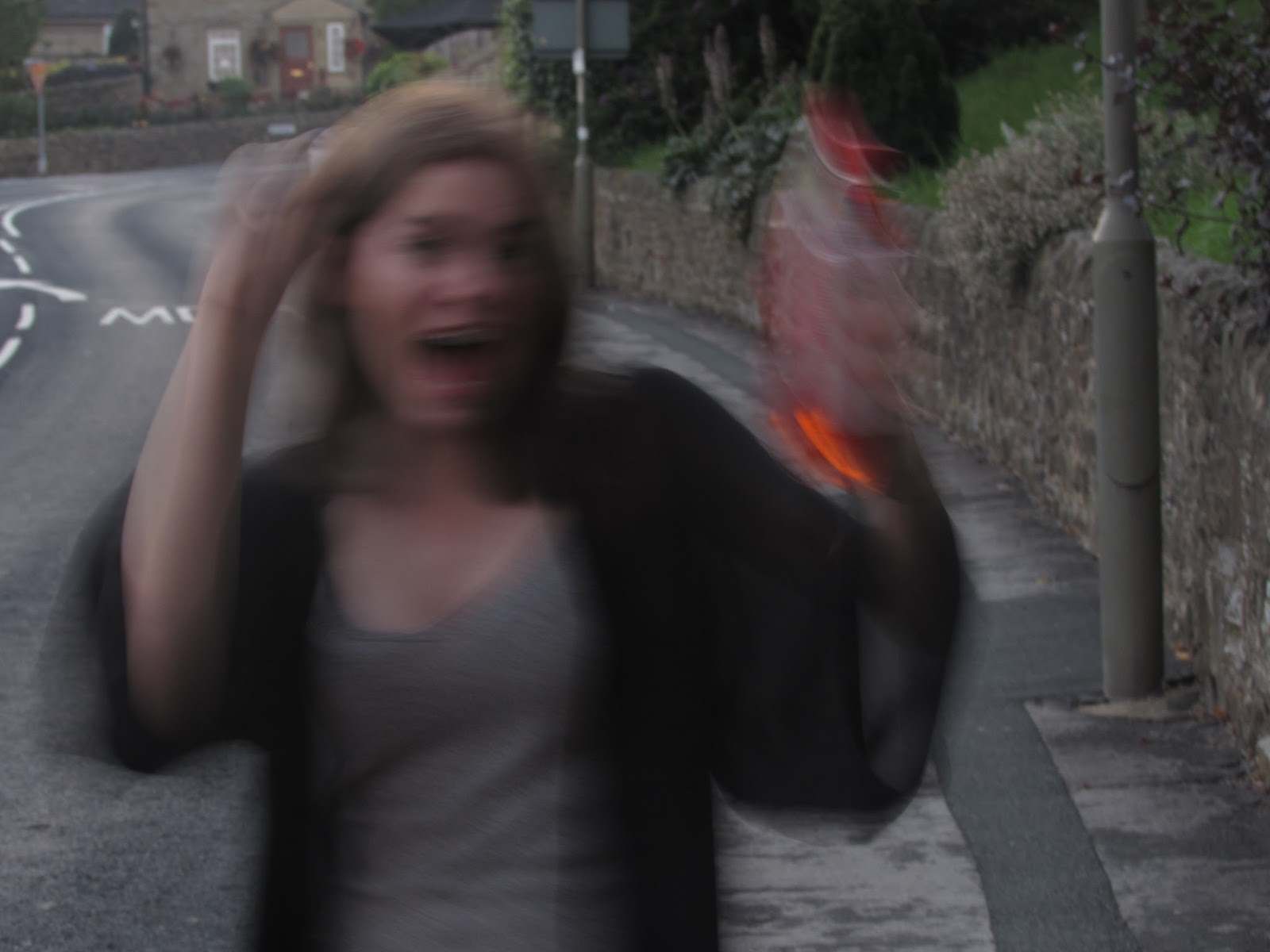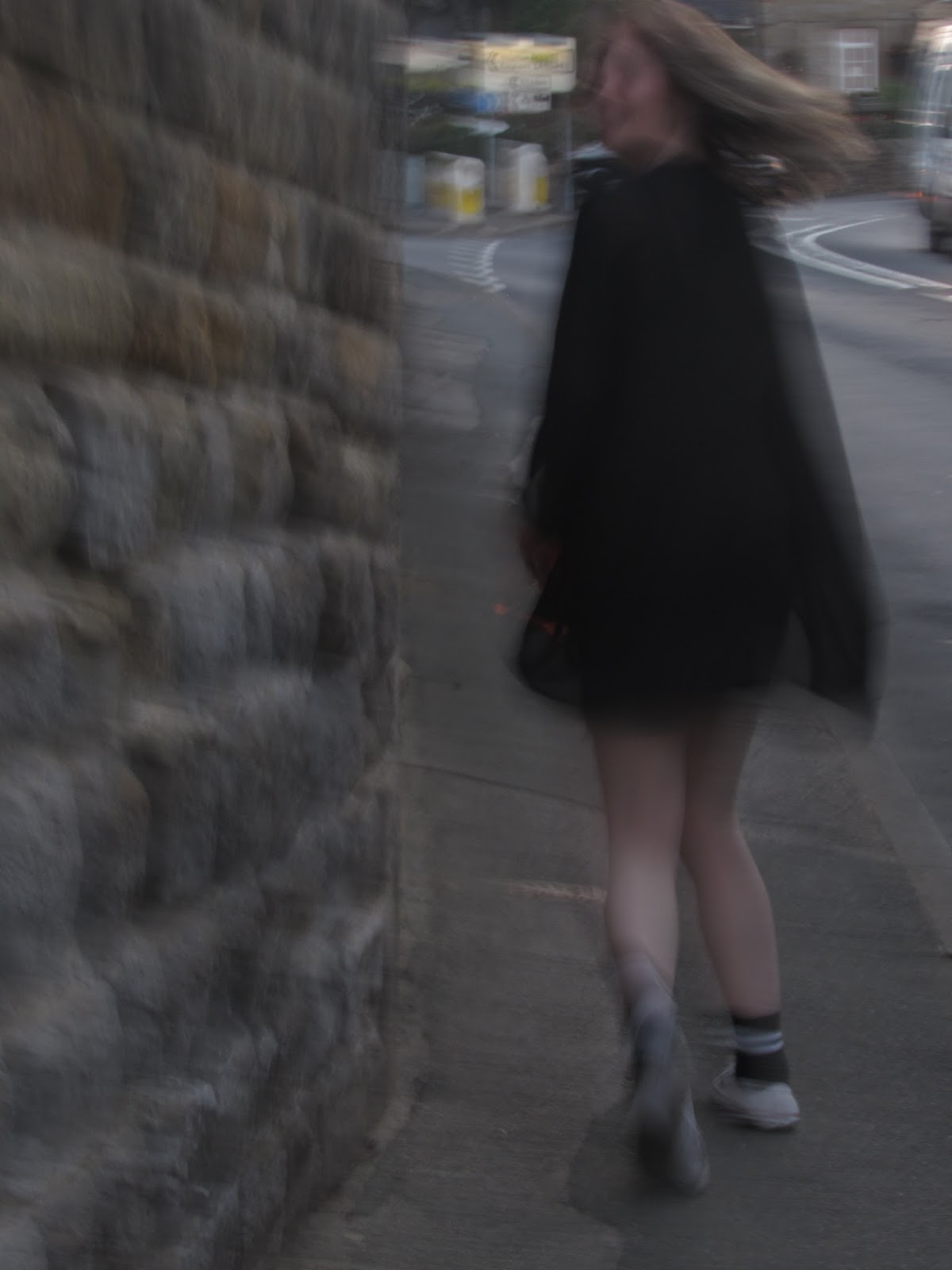 We set off at 8:09pm just after watching the sun drop behind the hill in a matter of seconds. This was so nice to watch and I was very happy because it wasn't cold outside just nice and warm, though not too hot. We trailed my long dress and Kate's trendy shoes down to some steps next to a beautiful cluster of the old houses that were here many moons ago. On the footpath through the village we were met by a couple walking the same path, so we styled it out by walking to the nearest cul-de-sac. Sneaky.