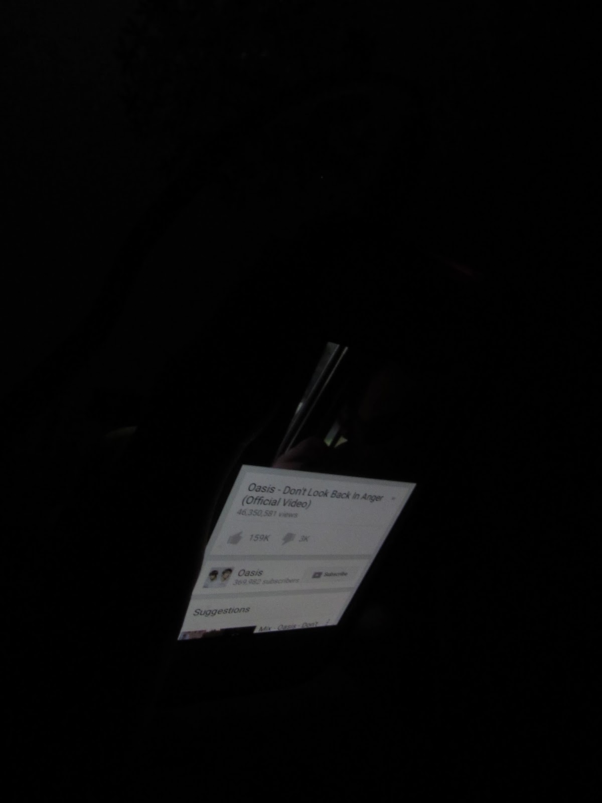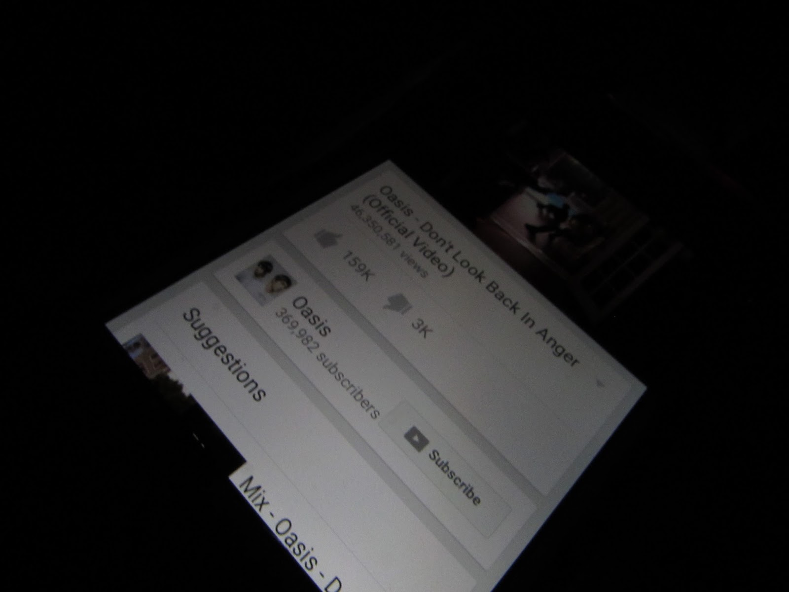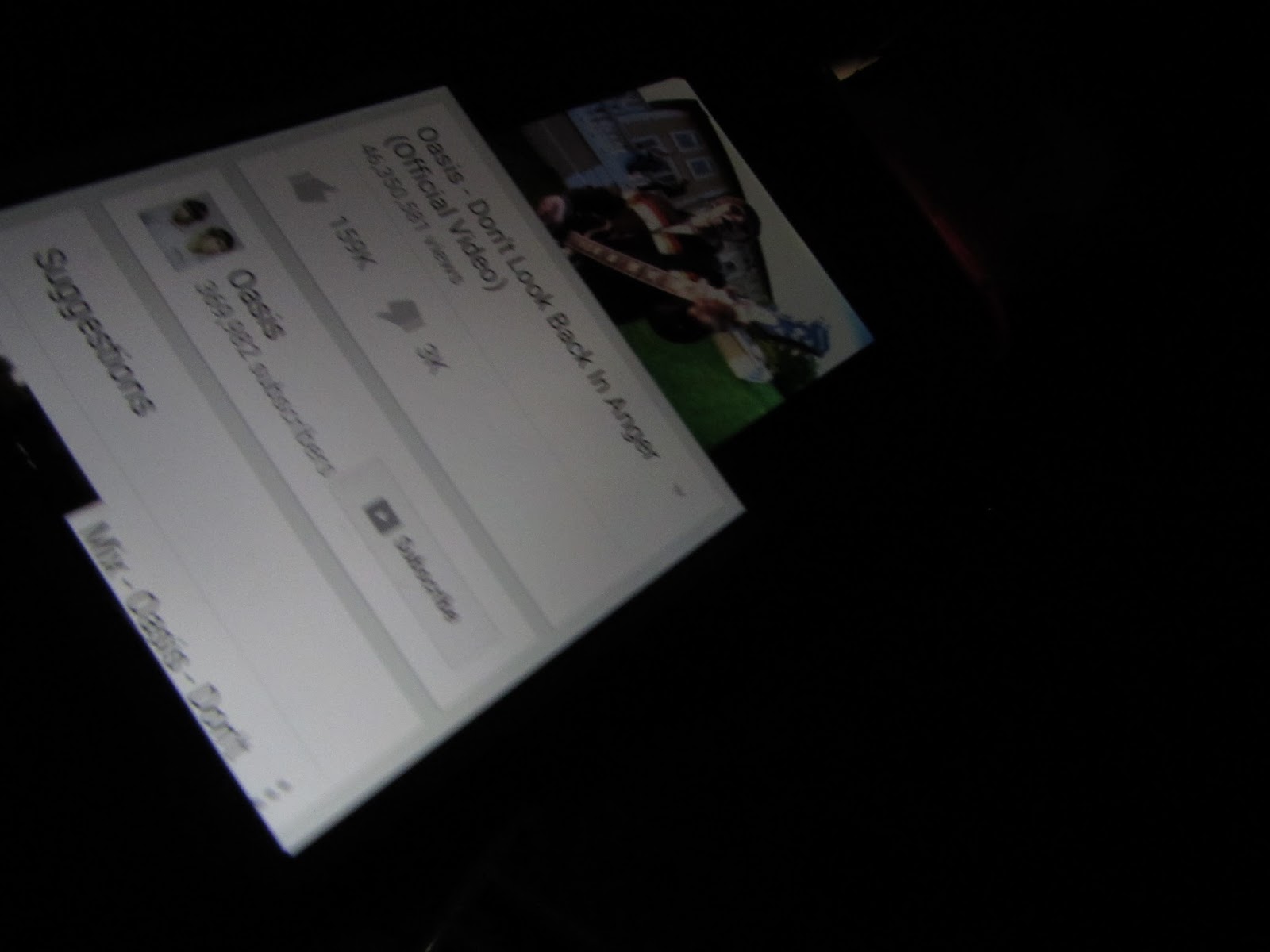 Eg, first line of Oasis all around the world on back of dark bus stop photo.