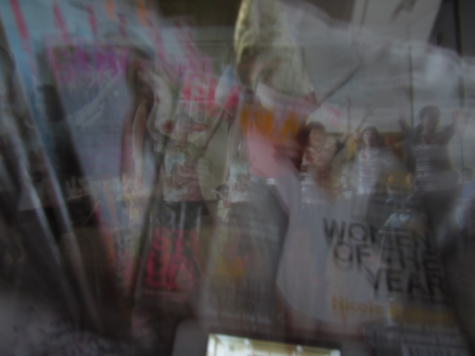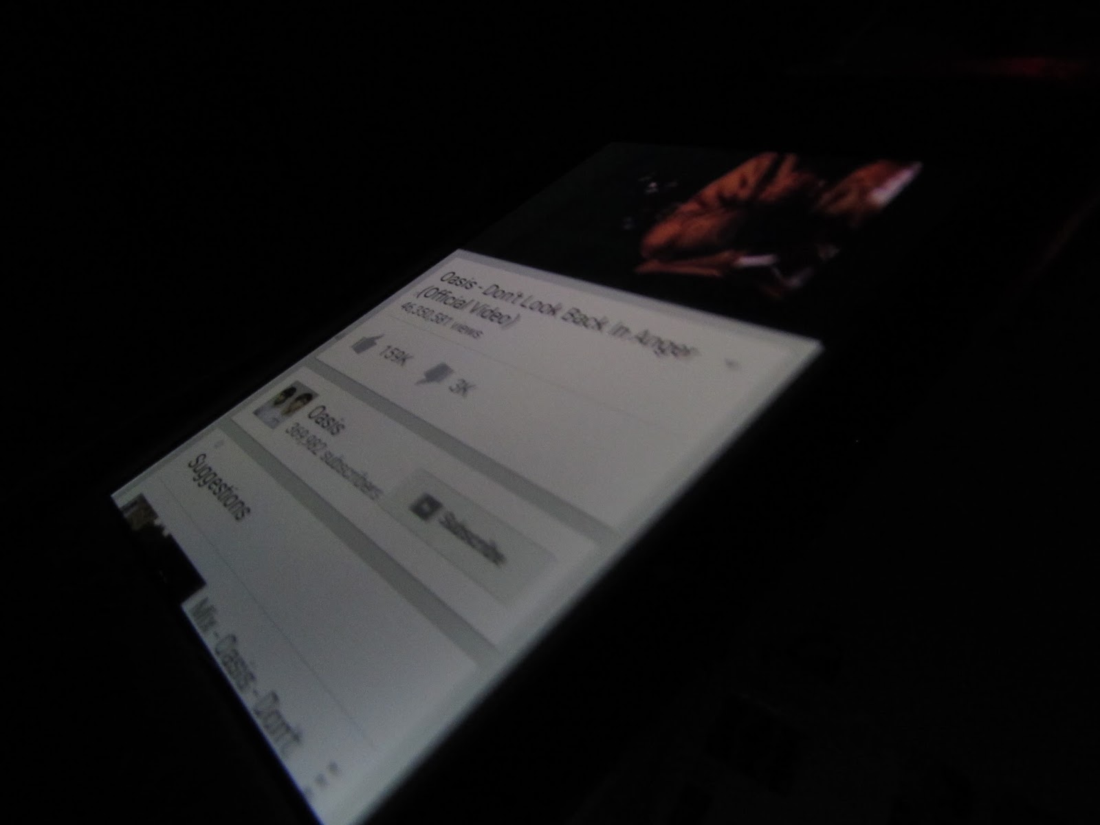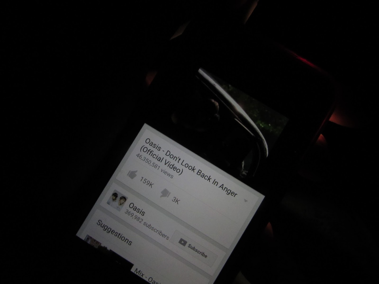 Eg, first line of Oasis all around the world on back of dark bus stop photo.