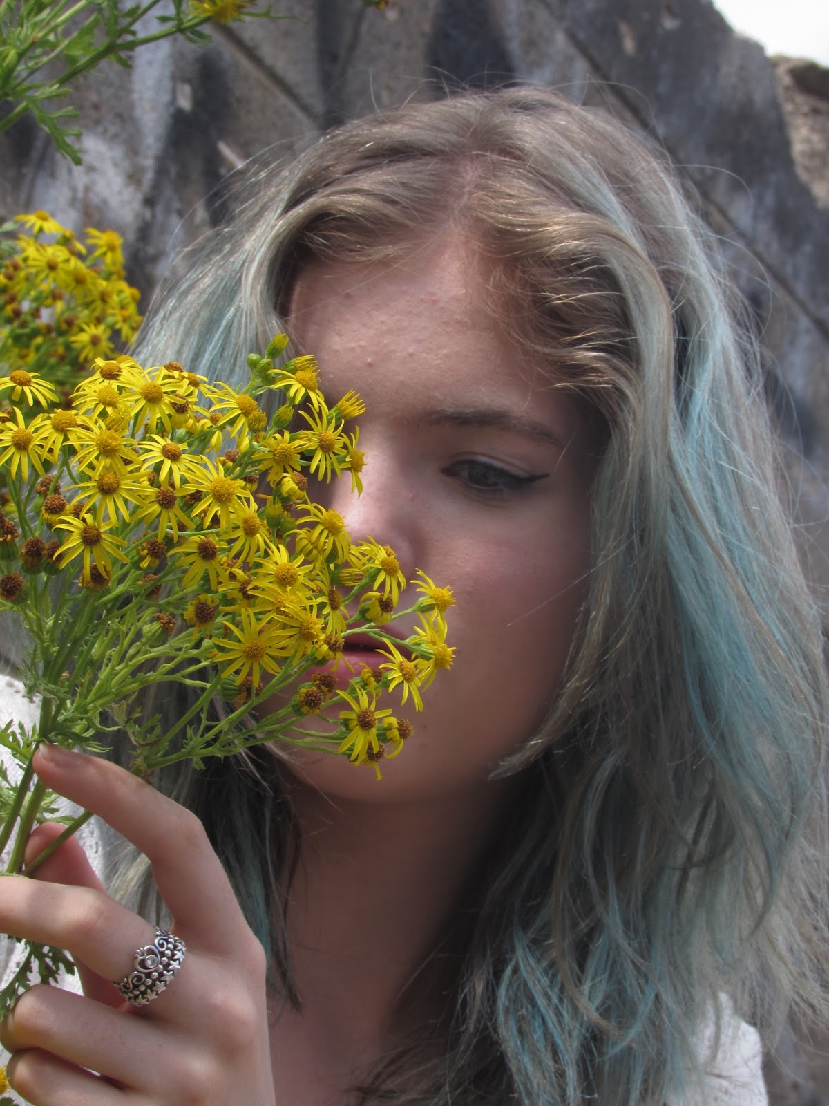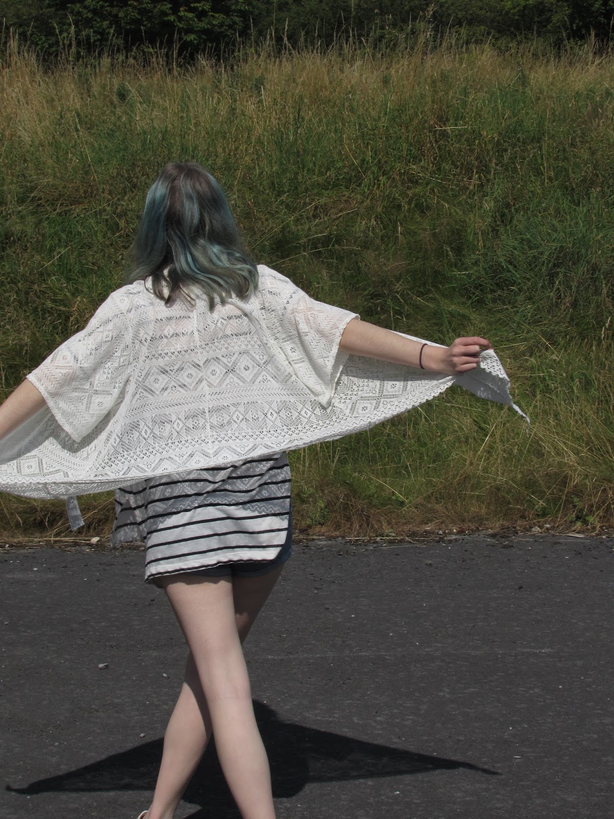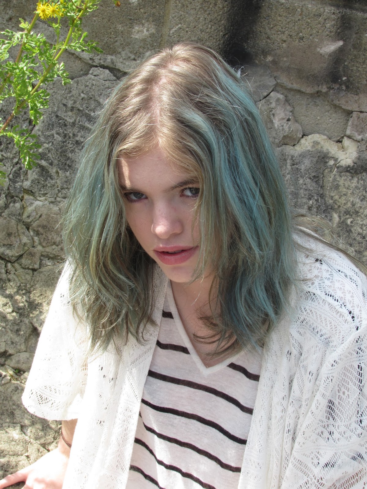 This set of photographs include the images taken over a joyous three day photoshoot. Consisting of outfit changes in different locations, though in the same tiny village and a few hair changes. You will see Kate's marvelous blue hair, bleach london out of the blue, magically transform into the beauty of a mint-choc chip colour.